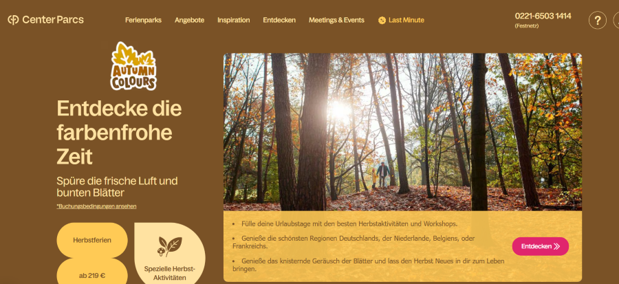 Goldener Herbst bei Center Parcs: schon ab 249 €