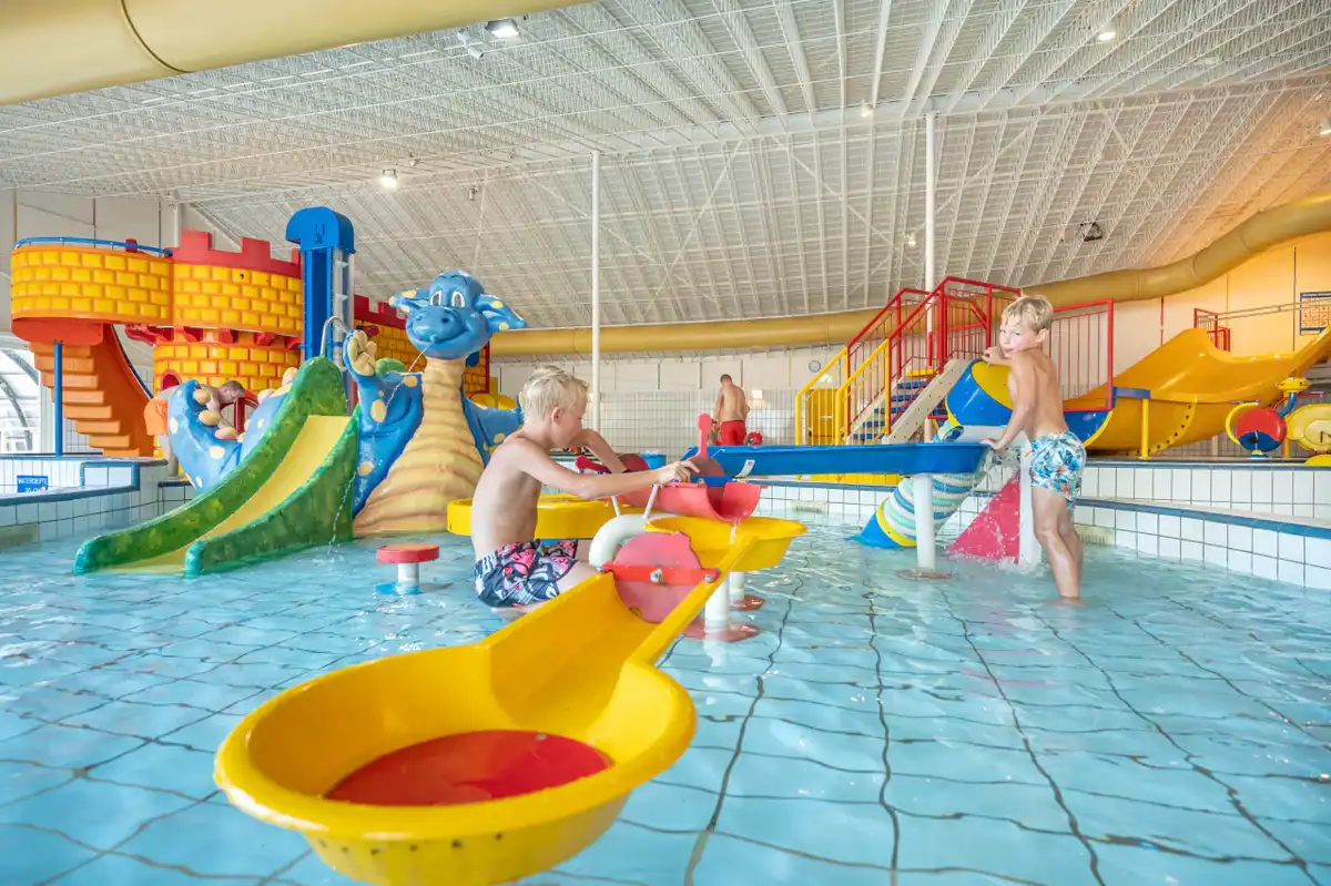 Der Wasserpark von Capfun Sprookjescamping besteht aus einem Innen- und Außenbereich. Im Innenbereich gibt es einen Spaß-Wasserspielplatz mit Rutschen, Blasen und einem aufregenden Babyplanschbecken. Der Außenbereich bietet ein weiteres Schwimmbad, einen Wasserspielplatz, ein Babyplanschbecken und eine breite Familienrutsche.