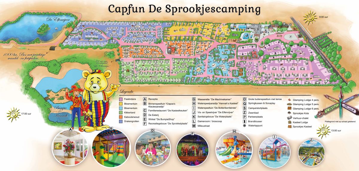Capfun Sprookjescamping ist ein märchenhafter Ort im Wald, an dem Märchen lebendig werden. Ideal für Familien mit kleinen Kindern, um in die Welt von Hannah der Heldhaftigen einzutauchen, die zahlreiche Abenteuer mit ihren Märchenfreunden erlebt. Täglich können Kinder und ihre Eltern ein spezielles Abenteuer der Märchenfiguren im Theater genießen. Gäste können ihr Zelt, ihren Wohnwagen oder ihr Camper-Van auf einem der großzügigen Stellplätze aufstellen. Zudem stehen zahlreiche Luxusunterkünfte zur Auswahl.