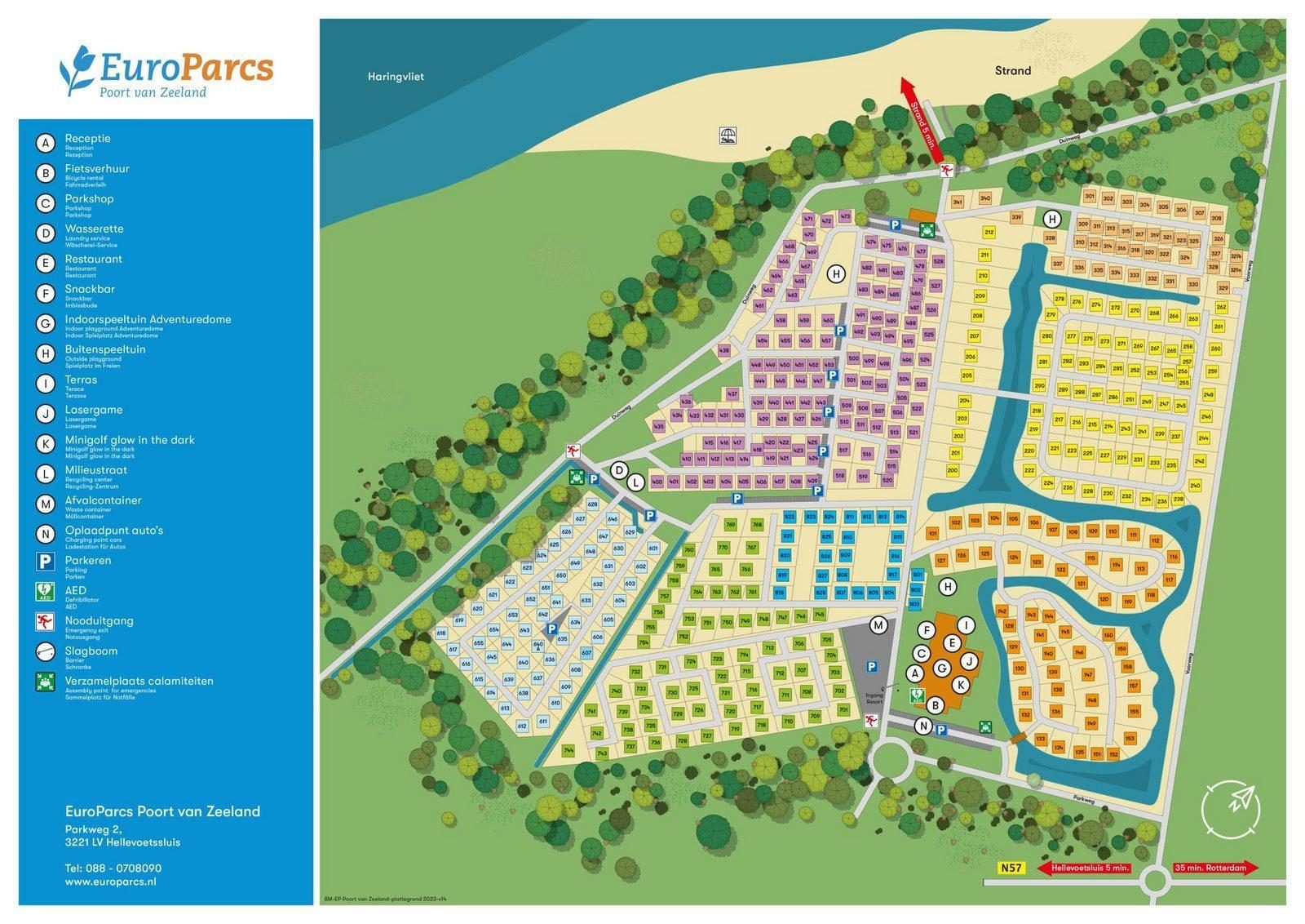 Auf diesem Ferienpark ist jeder Urlaubsgast genau am richtigen Ort. Mit einem Strand und einem Freizeitsee in Laufnähe gibt es reichlich Platz, um sich bei warmem Wetter abzukühlen. Zudem stehen sowohl ein Fahrradverleih als auch ein Bootsverleih zur Verfügung, um die Umgebung zu genießen. Neben den Sommer-Einrichtungen bietet der Park auch bei weniger gutem Wetter viele Möglichkeiten; so gibt es einen großen Adventuredome, in dem man Lasertag spielen oder Glow in the Dark Minigolf ausprobieren kann, sowie einen Indoor-Spielplatz zum Austoben. Auch in der Umgebung gibt es zahlreiche Ausflugsziele. Rotterdam liegt etwa 40 Minuten entfernt, während Hellevoetsluis und das historische Städtchen Brielle noch schneller zu erreichen sind.