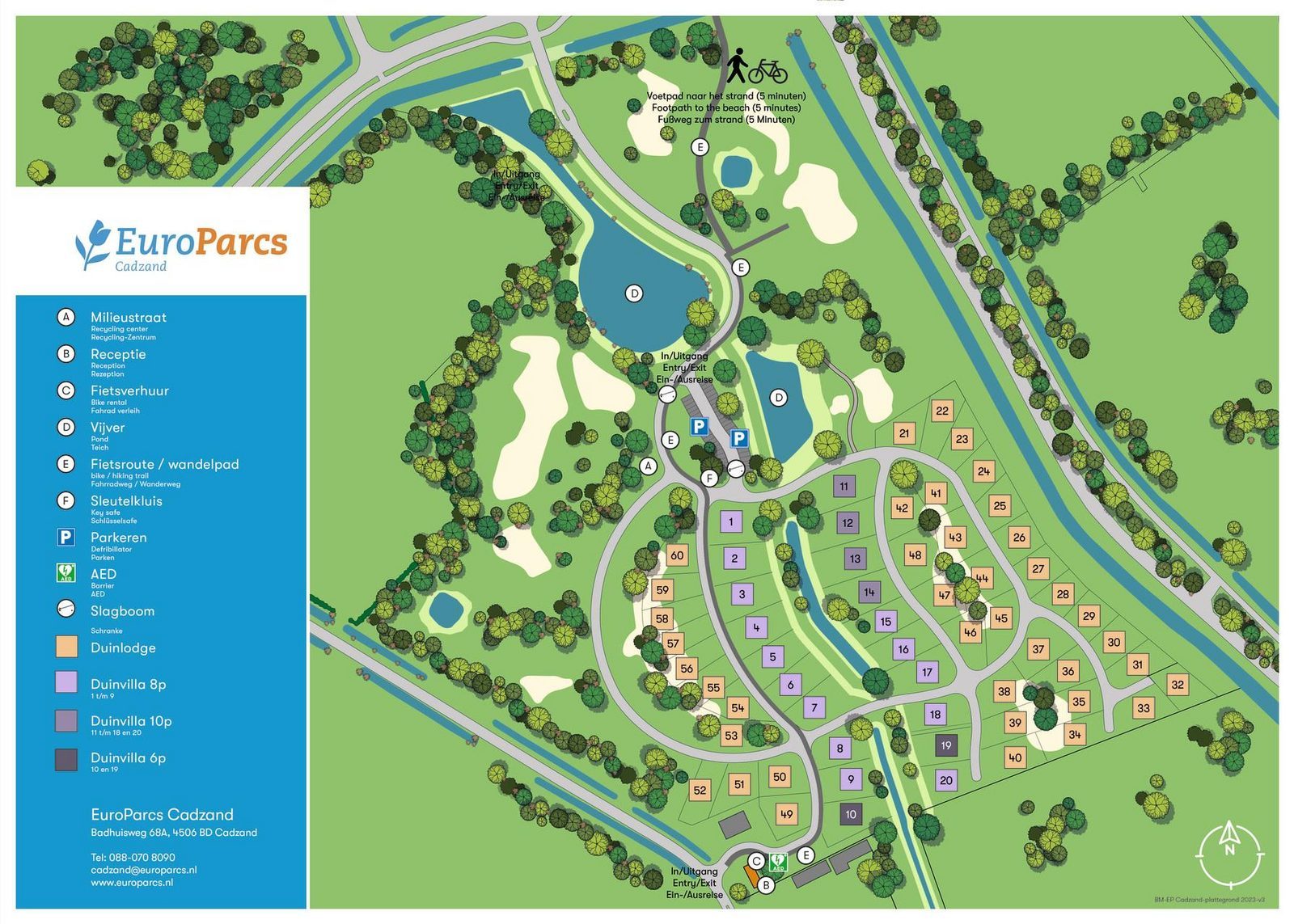 EuroParcs Vakantiepark Cadzand-Bad begrüßt Sie im südlichsten Badeort der Niederlande und bietet Ihnen ein luxuriöses Urlaubserlebnis direkt an der Nordsee. In diesem modernen Resort wohnen Sie in stilvollen Ferienhäusern die durch ihre zeitgemäße Architektur sowie hochwertige Ausstattung überzeugen und nur einen kurzen Spaziergang vom breiten Sandstrand entfernt liegen. Genießen Sie die frische Meeresbrise beim Sonnenbaden oder nutzen Sie die erstklassige Infrastruktur des Parks für einen entspannten Familienurlaub. Dank der Nähe zu den charmanten Städten Flanderns sowie dem beeindruckenden Naturschutzgebiet Het Zwin ist dieser Park der ideale Ausgangspunkt für alle die Erholung am Wasser mit kulturellen Entdeckungen verbinden möchten.