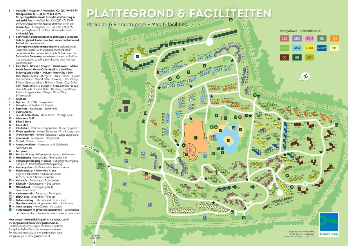 Auf dem autofreien Ferienpark befinden sich 502 Bungalows auf einer Fläche von 35 Hektar. In diesem Park wird garantiert keine Langeweile aufkommen. Mit dem äußerst umfangreichen Angebot an Einrichtungen ist purer Urlaubsgenuss vorprogrammiert. Nehmen Sie am Nachmittag ein Bad im Subtropischen Badeparadies oder nutzen Sie die zahlreichen Spiel- und Sportmöglichkeiten. So können Sie beispielsweise mit der ganzen Familie eine gesellige Runde Bowling oder Minigolf spielen. Am Abend haben Sie die Wahl zwischen den verschiedenen Restaurants, die das Landal De Lommerbergen zu bieten hat. Für den täglichen Einkauf gibt es einen Supermarkt direkt im Park. Auch die hügelige Umgebung ist wunderschön. Wenn Sie Lust auf einen Stadtbummel haben: Die Städte Venlo und Roermond erreichen Sie innerhalb von 30 Minuten.