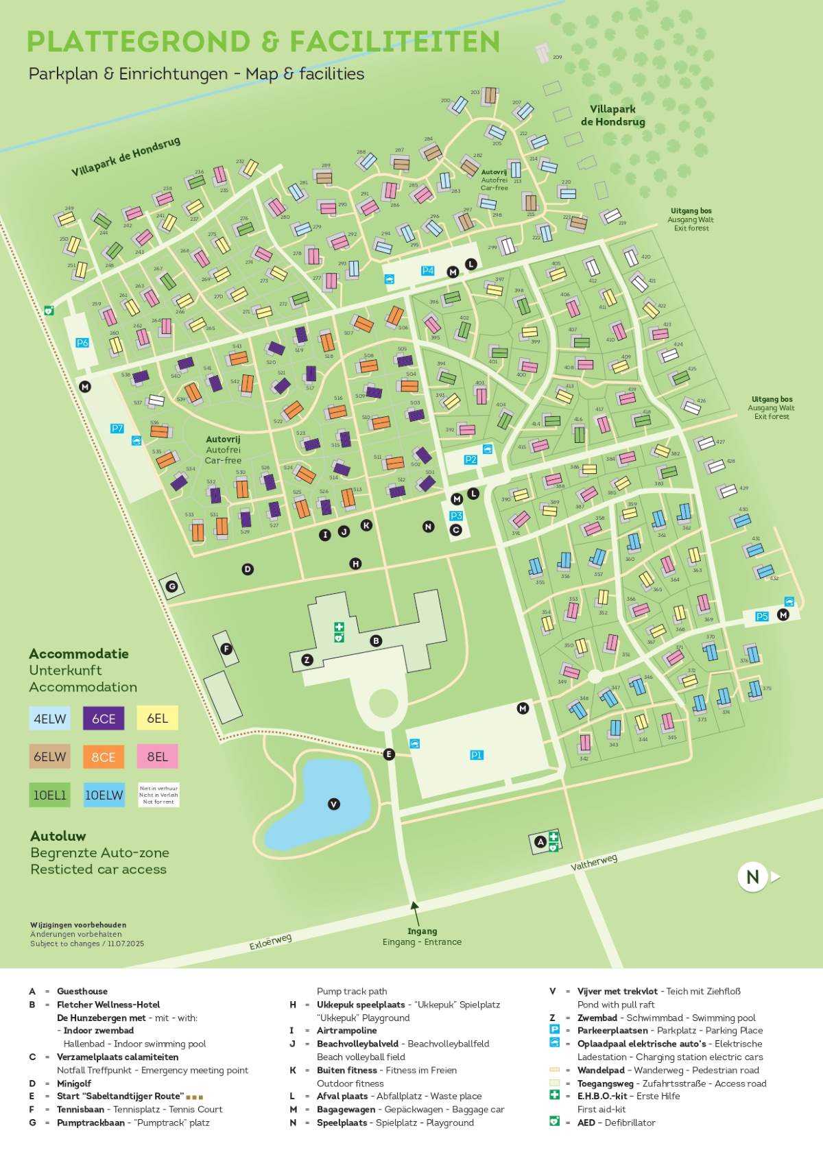 Der Park legt großen Wert auf Entspannung und Wohlbefinden. Neben den hochwertigen Ausstattungen in den Ferienhäusern profitieren Gäste von den Einrichtungen des benachbarten Fletcher Hotels Hunzebergen. Hier stehen eine Sauna, ein Dampfbad sowie ein moderner Fitnessraum zur Verfügung. So lässt sich der Urlaubstag nach einer Wanderung oder Radtour durch die wunderschöne Umgebung optimal abrunden.