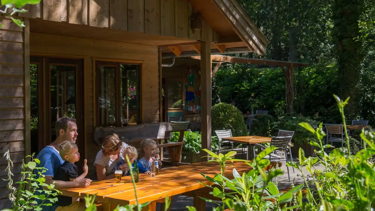 Die Unterkünfte auf Landgoed Molecaten sind ebenso charmant wie die Umgebung. In den liebevoll gestalteten Holzhäusern erleben Urlauber rustikalen Komfort mit einer gemütlichen Atmosphäre. Alle Häuser sind komplett ausgestattet mit Küche, Bad, Wohnzimmer und Terrasse – ideal für Paare, Familien oder kleine Gruppen. Alternativ gibt es großzügige Stellplätze für Wohnwagen, Zelte oder Wohnmobile, inklusive Strom- und Wasseranschluss. Für das Frühstück sorgt ein Brötchenservice, der täglich frisches Brot liefert. Wer sich nach einem aktiven Tag stärken möchte, kann in der kleinen Kantine eine herzhafte Mahlzeit genießen.