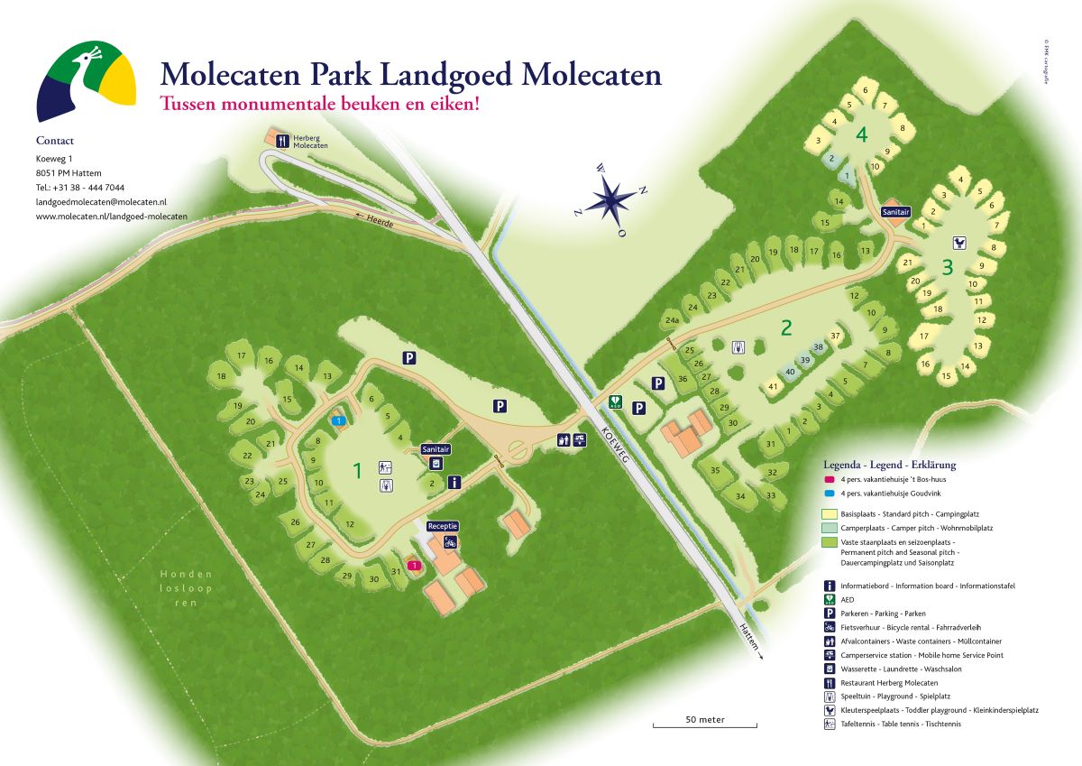 Landgoed Molecaten ist ein kleiner Campingplatz mitten in der Natur. Der Campingplatz ist ideal für alle, die Ruhe und Privatsphäre suchen. Am Morgen genießt du vor dem Zelt oder Bungalow frische Brötchen und das Zwitschern der Vögel. Auf dem Campingplatz selbst gibt es kein Schwimmbad, aber Gäste von Landgoed Molecaten können das Schwimmbad des Molecaten Park De Leemkule in etwa 2 km Entfernung oder des Molecaten Park De Koeberg in etwa 11 km Entfernung kostenlos nutzen. Die Kinder spielen auf dem Spielplatz oder es wird eine Runde Tischtennis gespielt. In der Umgebung des Landguts kannst du in einem der Restaurants hervorragend essen. An der Rezeption erhältst du Tipps zu den schönsten und besten Wander- und Fahrradrouten.