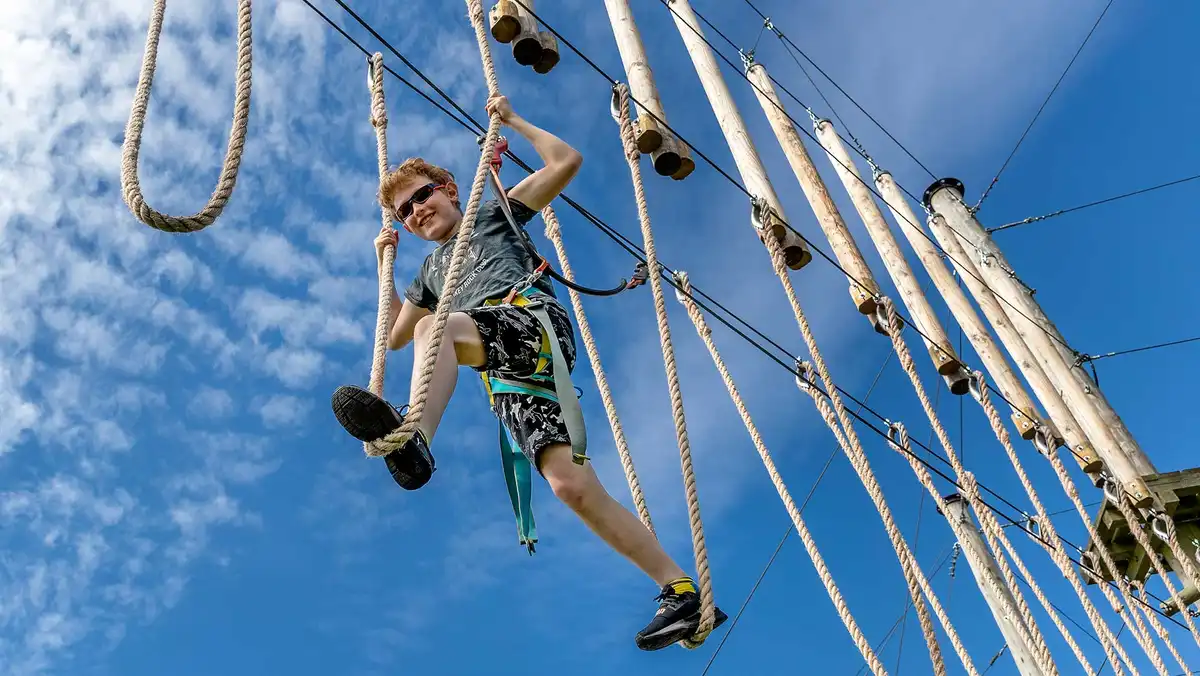 Das Kletterparadies im Park ist ideal für ältere Kinder und bietet aufregende Abenteuer auf drei verschiedenen Kletterkursen sowie eine beeindruckende 517 Meter lange Zipline. Der Molecaten Park Kuierpad hat auch einen Skatepark, eine Bogenschießanlage, und für kreative Köpfe gibt es die Möglichkeit, Flöße zu bauen. Auf dem Panna-Feld können sich die Kinder beim Fußballspielen austoben. Für einen aktiven Aufenthalt können Fahrräder und Go-Karts direkt im Park ausgeliehen werden, und die Mini-Golfanlage sorgt für zusätzlichen Spaß. Jüngere Gäste finden zahlreiche Spielplätze und ein Air-Trampolin, während das Animationsteam während der Schulferien für ein abwechslungsreiches Programm sorgt.