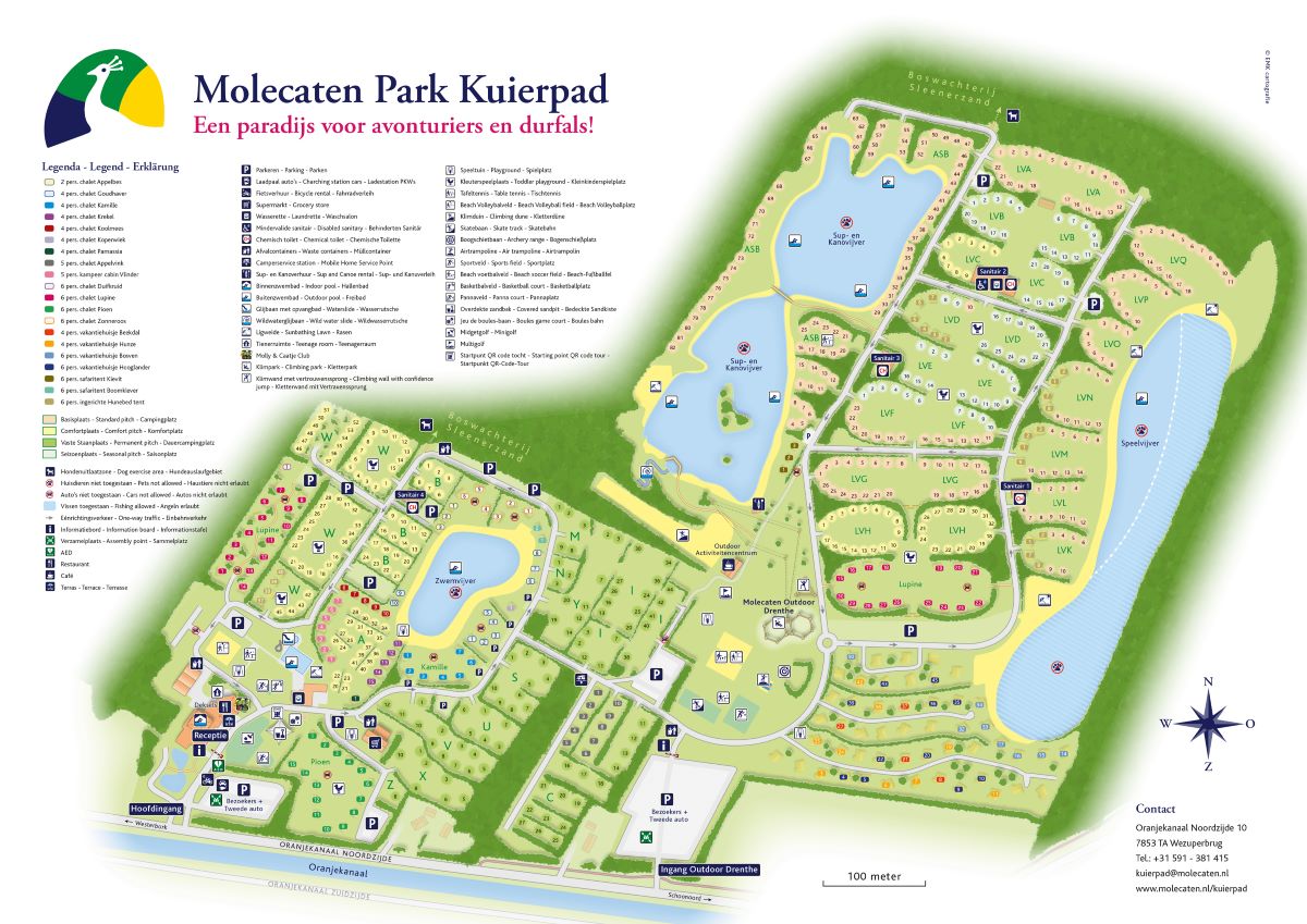 Der Molecaten Park Kuierpad bietet zahlreiche Einrichtungen, die den Aufenthalt zu einem unvergesslichen Erlebnis machen. Die Parkanlagen umfassen sowohl ein Innen- als auch ein Außenschwimmbad, das mit einer spannenden Rutsche und einem separaten Kinderbecken ausgestattet ist. Wassersportler können sich am Surf- und Kanuteich vergnügen, während sich die kleineren Gäste am Sandstrand des Spielteichs entspannen können.