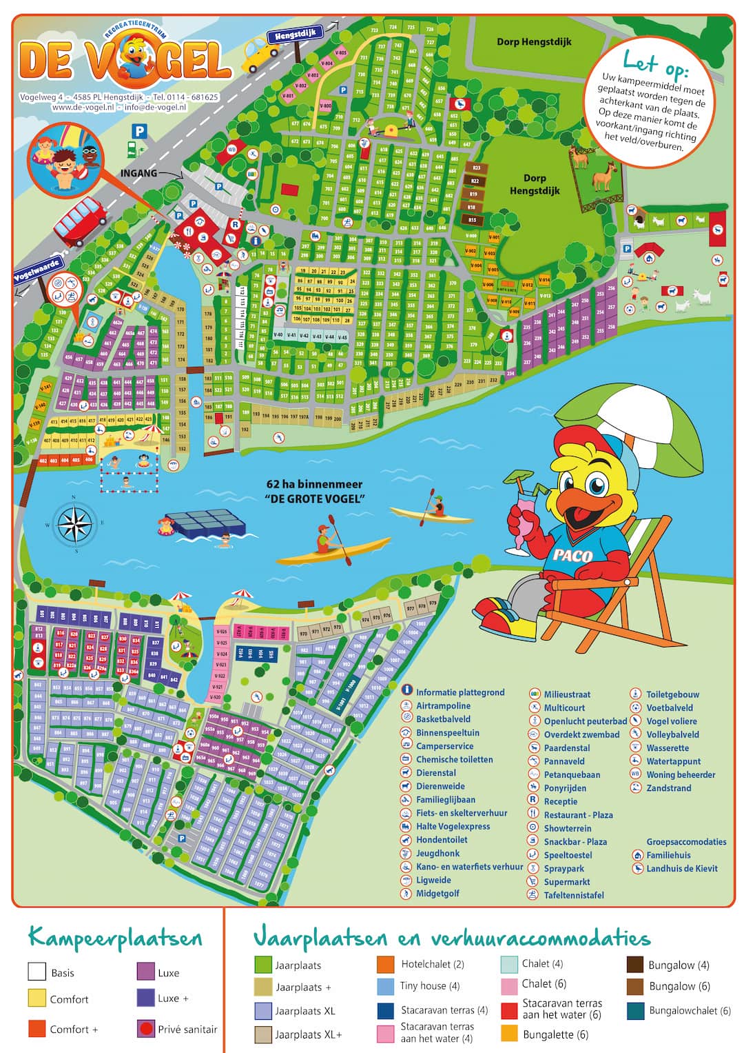 Das Recreatiecentrum De Vogel ist ein vielseitiger Ferienpark in der idyllischen Region Zeeuws-Vlaanderen, der sich perfekt für Familien, Aktivurlauber und Naturliebhaber eignet. Direkt an einem schönen Badesee gelegen und mit zahlreichen Einrichtungen ausgestattet, bietet dieser Ferienpark alles, was man für einen erholsamen und abwechslungsreichen Aufenthalt braucht. Ob Sonnenbaden am Sandstrand, schwimmen im überdachten Schwimmparadies oder entspannte Spaziergänge in der Natur – hier kommt jeder auf seine Kosten.