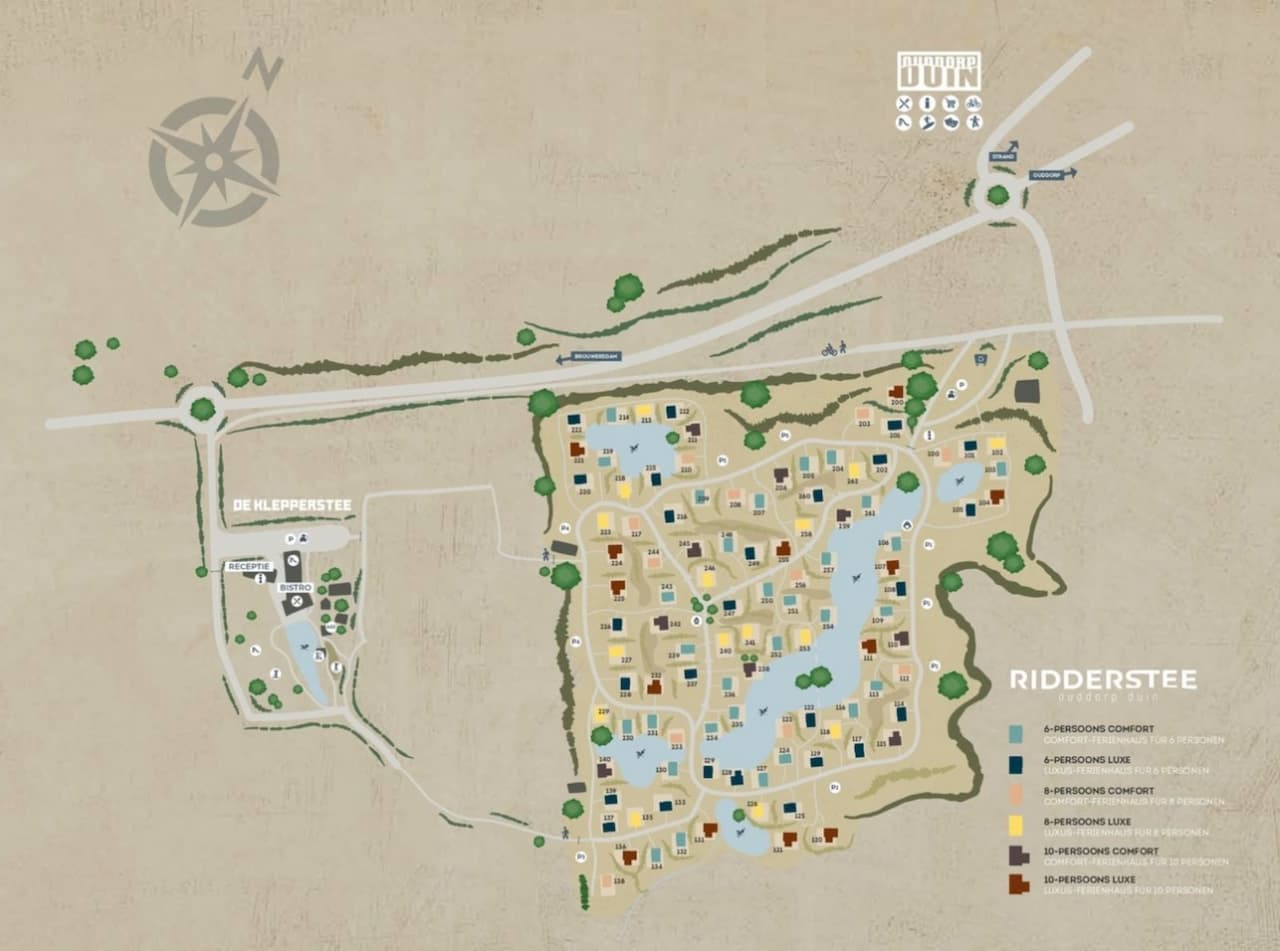 Ridderstee Ouddorp Duin ist nicht nur wegen seiner Lage beliebt, sondern auch wegen der Ruhe und Weite, die der Park bietet. Die großzügige Anlage ist perfekt geeignet, um dem Alltagsstress zu entfliehen und die Seele baumeln zu lassen. Die Nähe zum Meer, die frische Seeluft und die entspannte Atmosphäre machen diesen Park zu einem unvergleichlichen Urlaubsziel. Die harmonische Verbindung von luxuriöser Unterkunft, naturnaher Umgebung und vielfältigen Freizeitmöglichkeiten sorgt dafür, dass jeder Aufenthalt in Ridderstee Ouddorp Duin zu einem unvergesslichen Erlebnis wird.
