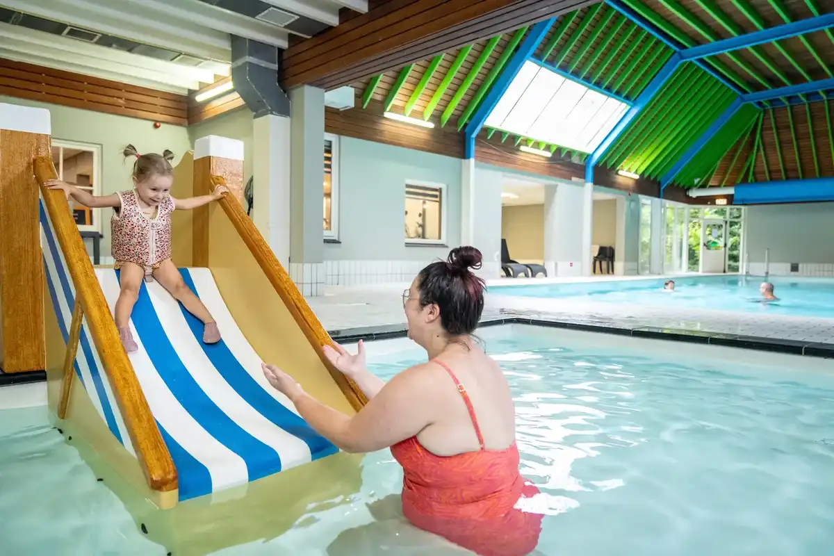 Der Ferienpark Bospark De Schaapskooi bietet eine Vielzahl an Freizeitmöglichkeiten, die für jedes Alter geeignet sind. Das Herzstück des Parks ist das überdachte Schwimmbad, in dem sich sowohl Erwachsene als auch Kinder entspannen und spielen können. Für die Kleinsten gibt es ein separates Kleinkinderbecken, ideal für Wasserspaß in sicherer Umgebung. Wer sportlich aktiv sein möchte, kann die Tennisplätze, die Boule-Bahn, das Basketballfeld oder die Tischtennisplatten nutzen. Besonders während der Ferienzeiten wird ein umfangreiches Sport- und Animationsprogramm angeboten, das sowohl Kindern als auch Erwachsenen ein abwechslungsreiches Freizeitprogramm bietet.