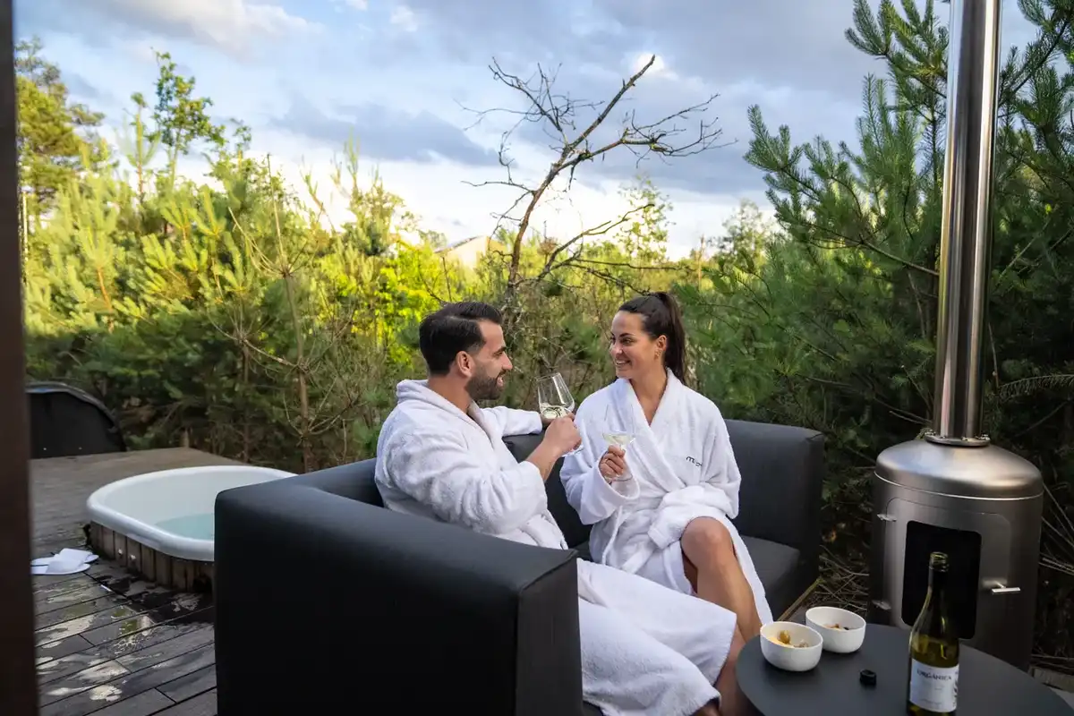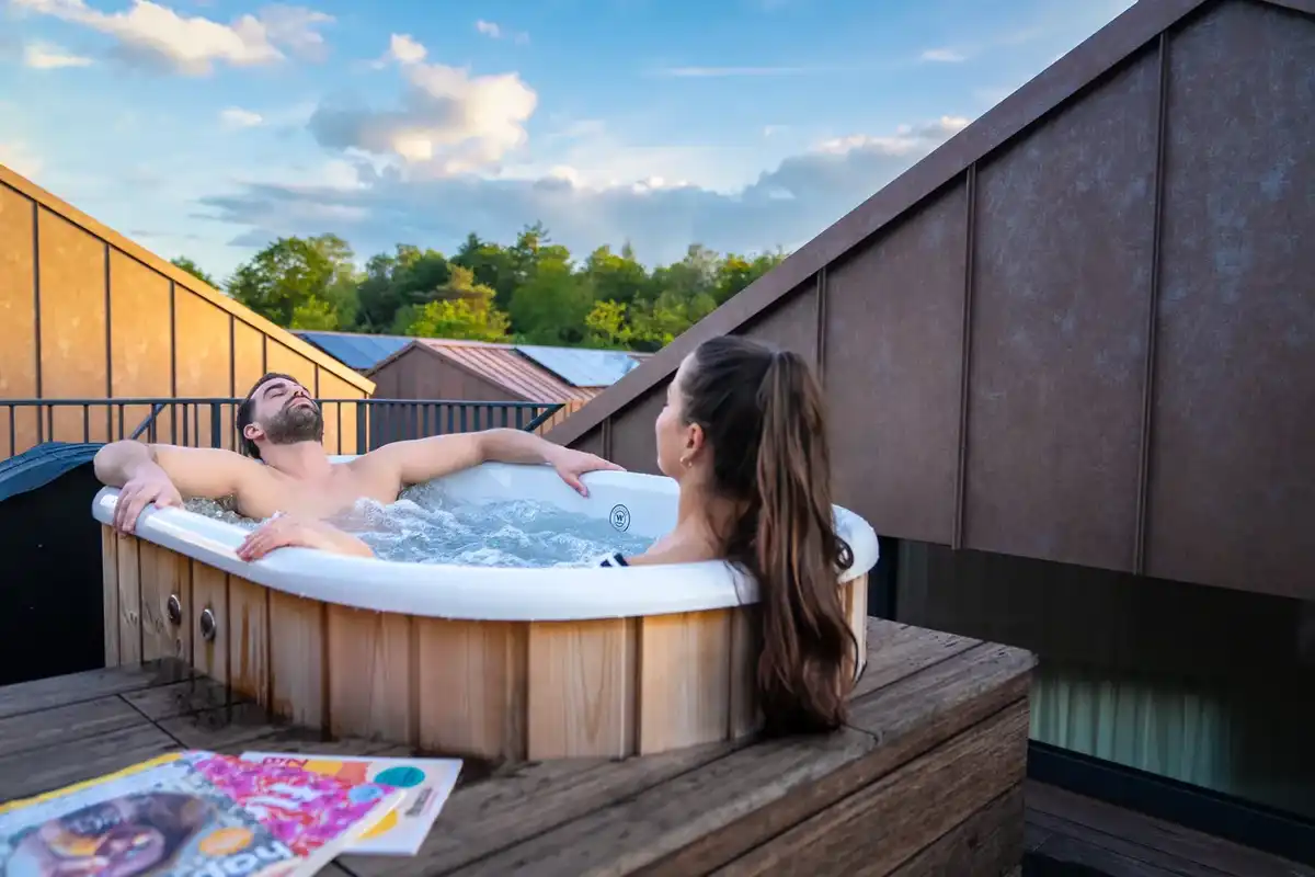 Roompot Marber Veluwe wurde unter dem „Break Away“-Konzept entwickelt, das den Fokus auf eine Verbindung von Luxus und Natur legt. Die Villen bieten große Fenster, die den Kontakt zur Natur ermöglichen. Vom privaten Deck und dem Whirlpool genießen Sie den Ausblick auf die grüne Umgebung. Jede Villa ist mit einer finnischen Sauna, einem TV mit Streaming-Optionen und einer voll ausgestatteten Küche ausgestattet. Bei klarer Nacht können Gäste vom Bett aus den Sternenhimmel bewundern, und das Glasdach in der Dusche sorgt für ein einzigartiges Erlebnis. Die Villen sind für zwei bis vier Erwachsene geeignet und bieten alles, was Sie für einen erholsamen Urlaub benötigen.