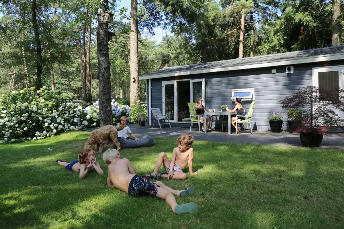 Nach einem aktiven Tag im Freien erwartet Sie in Vakantiepark Bonte Vlucht eine komfortable Unterkunft in einem der gemütlichen Chalets oder einer der safaritenten, die von viel Grün umgeben sind. Auf der Terrasse können Sie die frische Waldluft genießen und den Tag entspannt ausklingen lassen.