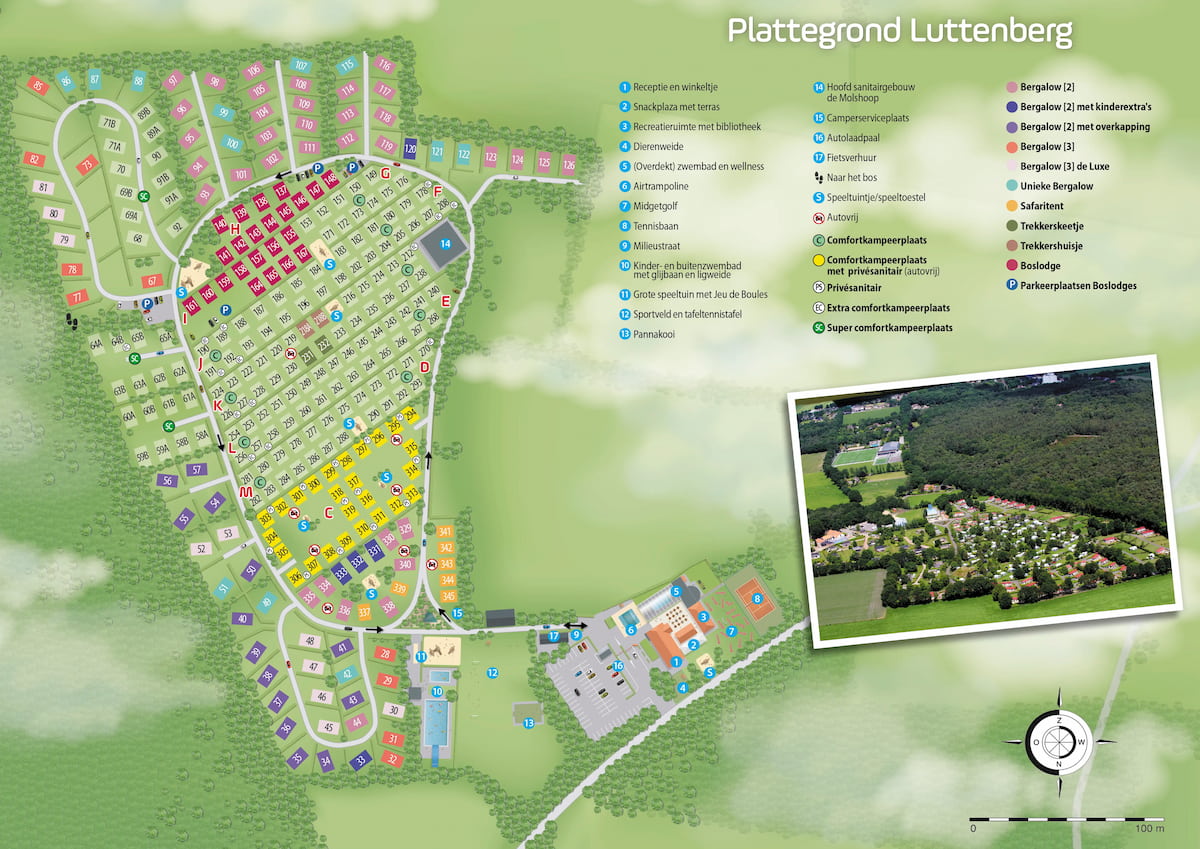 Die Anlage des Ferienpark De Luttenberg ist klein und freundlich und bietet dennoch viele Freizeitmöglichkeiten. Es stehen verschiedene Unterkunftsoptionen zur Auswahl, darunter gemütliche Chalets und klassische Campingplätze. Diese Vielfalt stellt sicher, dass für jeden Geschmack und jedes Budget etwas dabei ist. Die Snackbar und die Brasserie mit Terrasse sind ideale Orte, um nach einem ereignisreichen Tag zu entspannen und lokale Spezialitäten zu genießen.