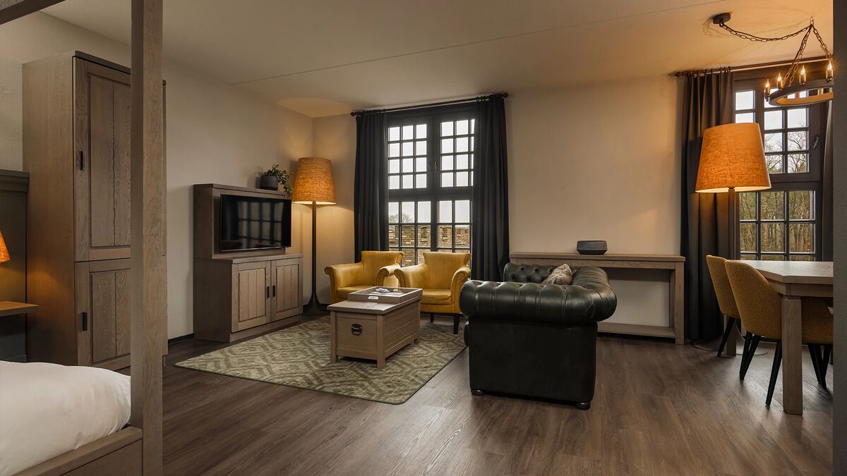 Für größere Gruppen und Familien steht die großzügige Boshoeve zur Verfügung, eine Gruppenunterkunft für 12 bis 24 Personen, ideal für Freundeskreise oder Familientreffen. Darüber hinaus gibt es Landhuys-Familienzimmer mit Hotelservice für bis zu 4 Personen im Hauptgebäude, wo ein komfortabler Aufenthalt inklusive Frühstück gewährleistet ist.